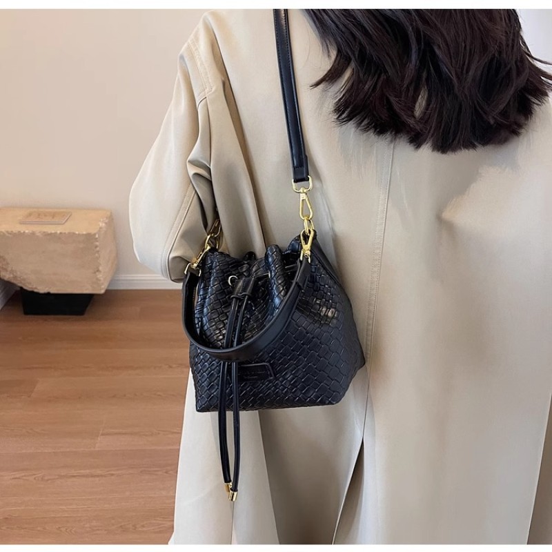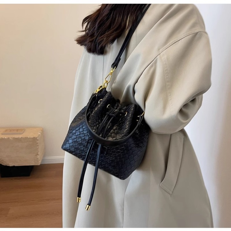 Fashionable all-match bag for women 2025 new crocodile pattern woven bucket bag high-quality texture commuter shoulder bag