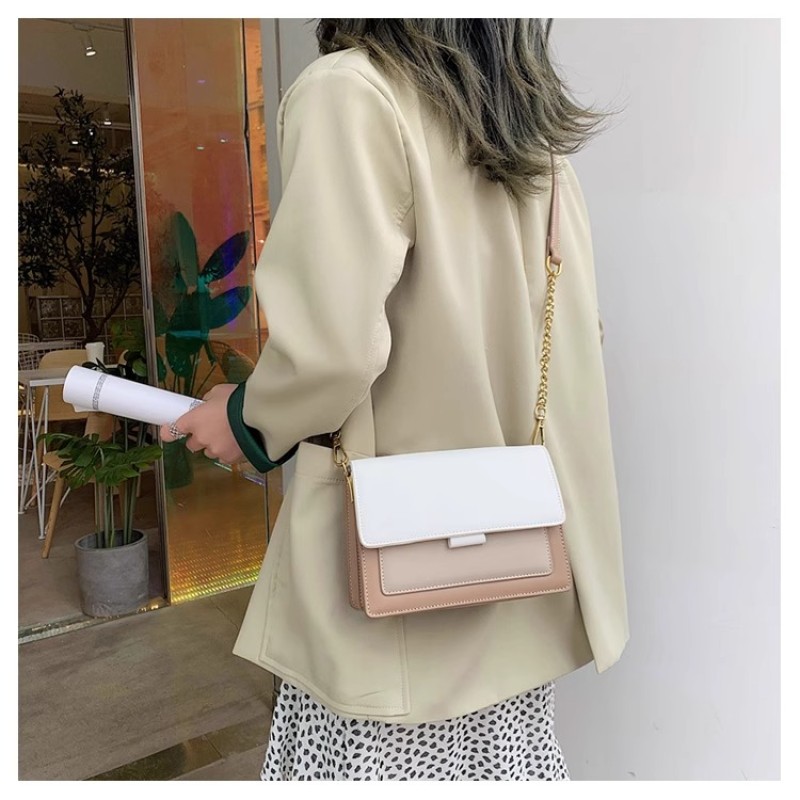 Spring and summer new contrast color chain bag women 2025 new Korean version all-match shoulder crossbody fashionable texture small square bag